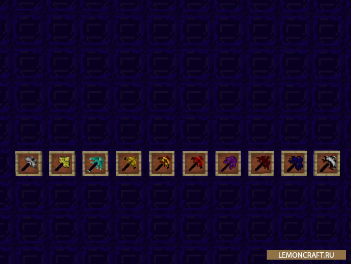 Мод на уникальное оружие Nonexistent+ добавляет в игру новое оружие, броню и материалы. С помощью данного мода вы сможете создавать уникальные мечи, комбинируя различные материалы. Например вы можете создать алмазный меч, покрытый изумрудами. Так мод добавляет усиленные кирки и специальные мечи, которые значительно превосходят обычные.