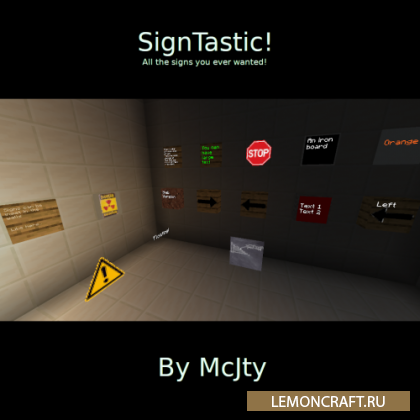 Мод на новые таблички SignTastic добавляет в игру несколько новых блоков, которые представляют собой плоский знак, табличку-плиту и полноблочную табличку.